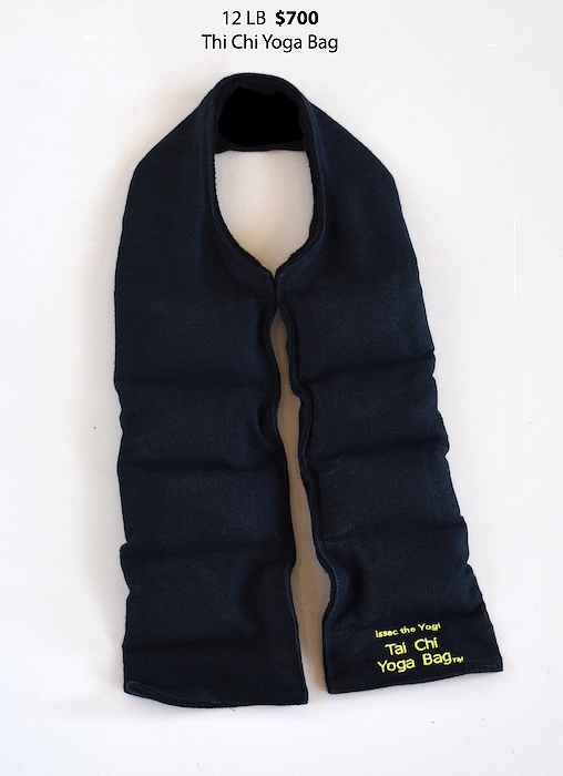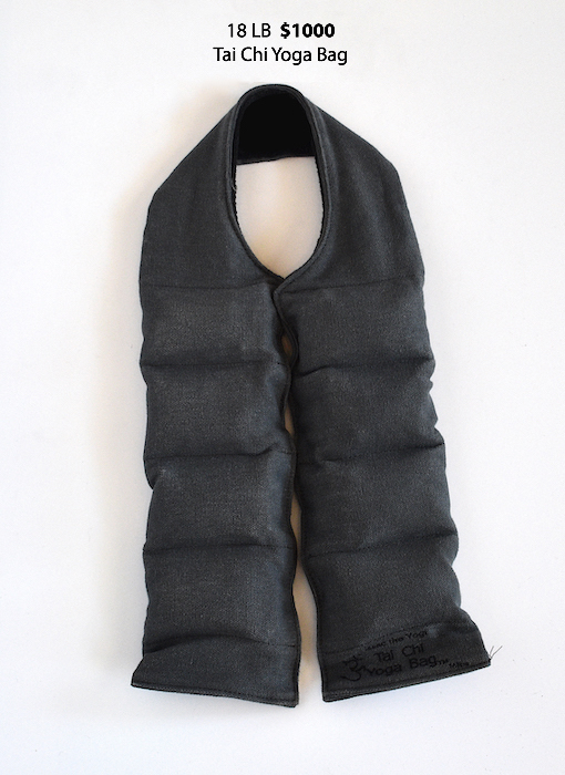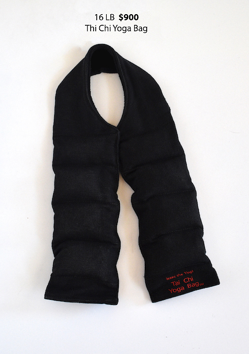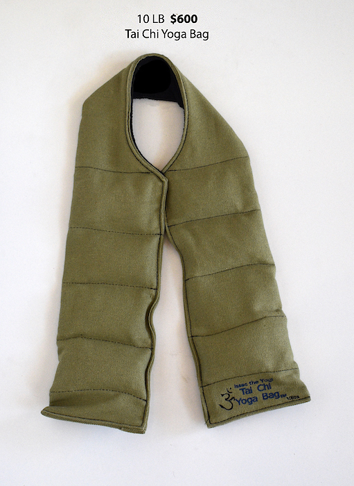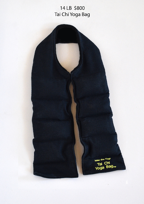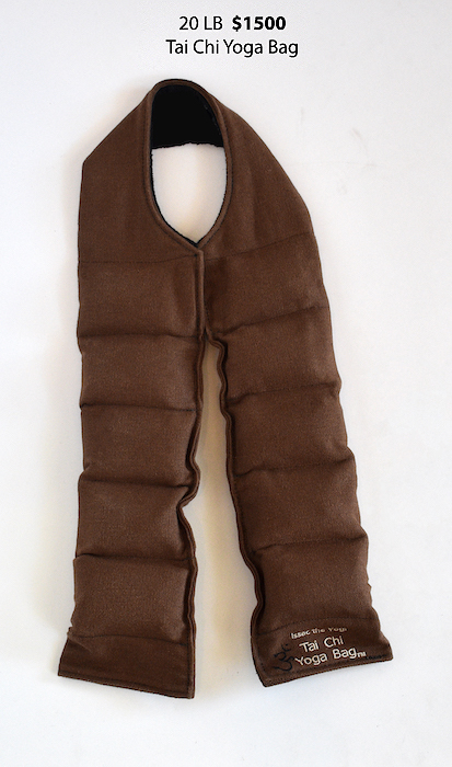 - The Tai Chi Yoga Bag is shaped like the lungs themselves. This therapeutic bag should be hung around the neck with each of the two sides distributed equally over the lobes of the lungs. The Tai Chi Yoga Bag is available in three weights…six, eight and ten pounds. The six-pound weights are ideal for beginners while the eight and ten-pound bags are used as one becomes more and more advanced.